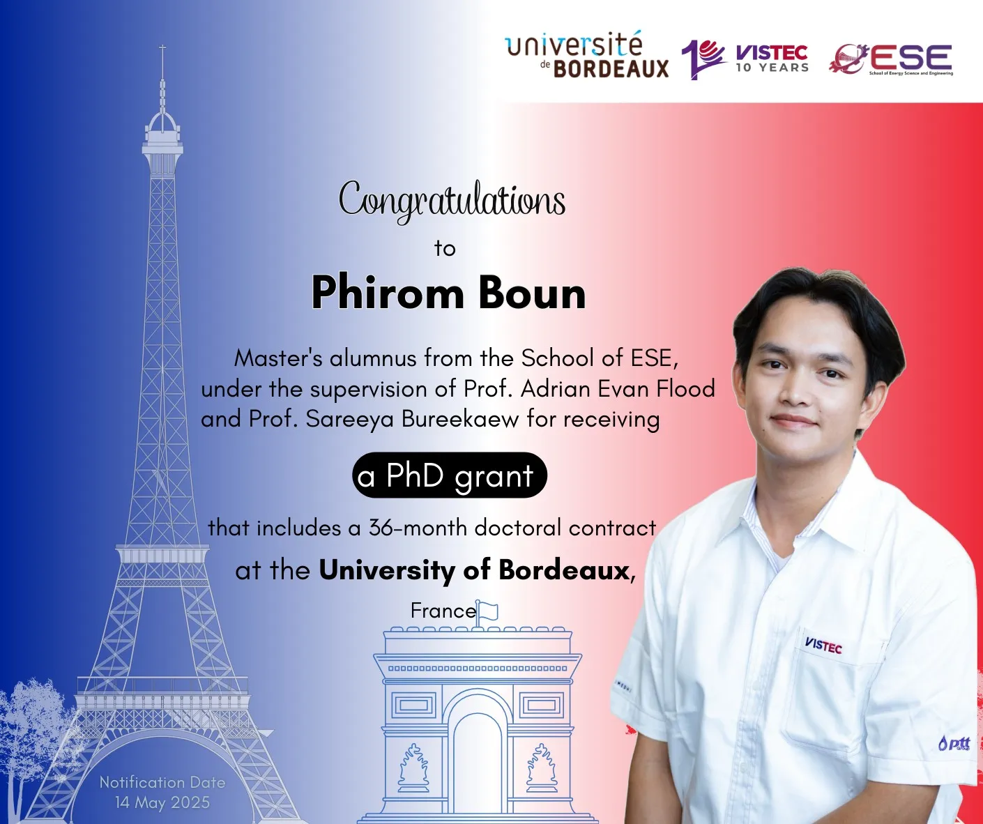 We are incredibly proud of Phirom's achievement and are confident he'll gain invaluable experience at the University of Bordeaux. Congratulations, Phirom! We wish you the very best as you embark on this exciting new chapter.