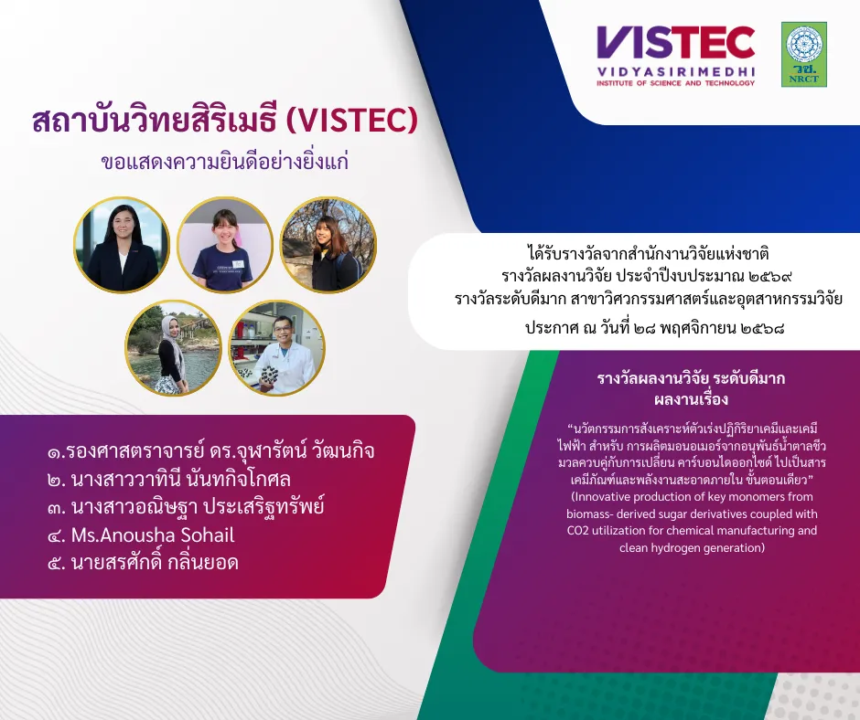 Award: รางวัลผลงานวิจัยระดับดีมาก วิศวกรรมศาสตร์และอุตสาหกรรมวิจัย ประจำปีงบประมาณ 2569