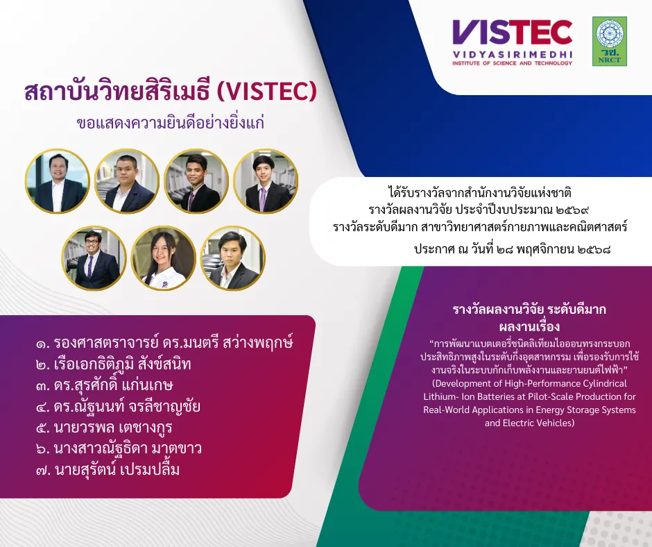 Award: รางวัลผลงานวิจัยระดับดีมาก สาขาวิทยาศาสตร์กายภาพและคณิตศาสตร์ ประจำปีงบประมาณ 2569