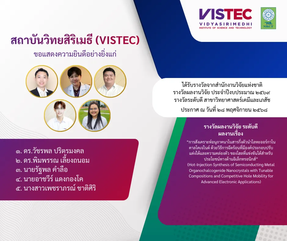 Recipient: ดร.วัชรพล ปริตรมงคล, ดร.พิมพรรณ เลี้ยงถนอม, นายรัฐพล คำลือ, นายอาชวีร์ แดงกองโค, นางสาวเพชราภรณ์ ชาติศิริ