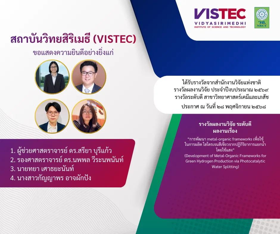 Recipient: ผู้ช่วยศาสตราจารย์ ดร.สรียา บุรีแก้ว, รองศาสตราจารย์ ดร.นพพล วีระนพนันท์, นายทยา เศาธยะนันท์, นางสาวกัญญาพร อาจผักปัง