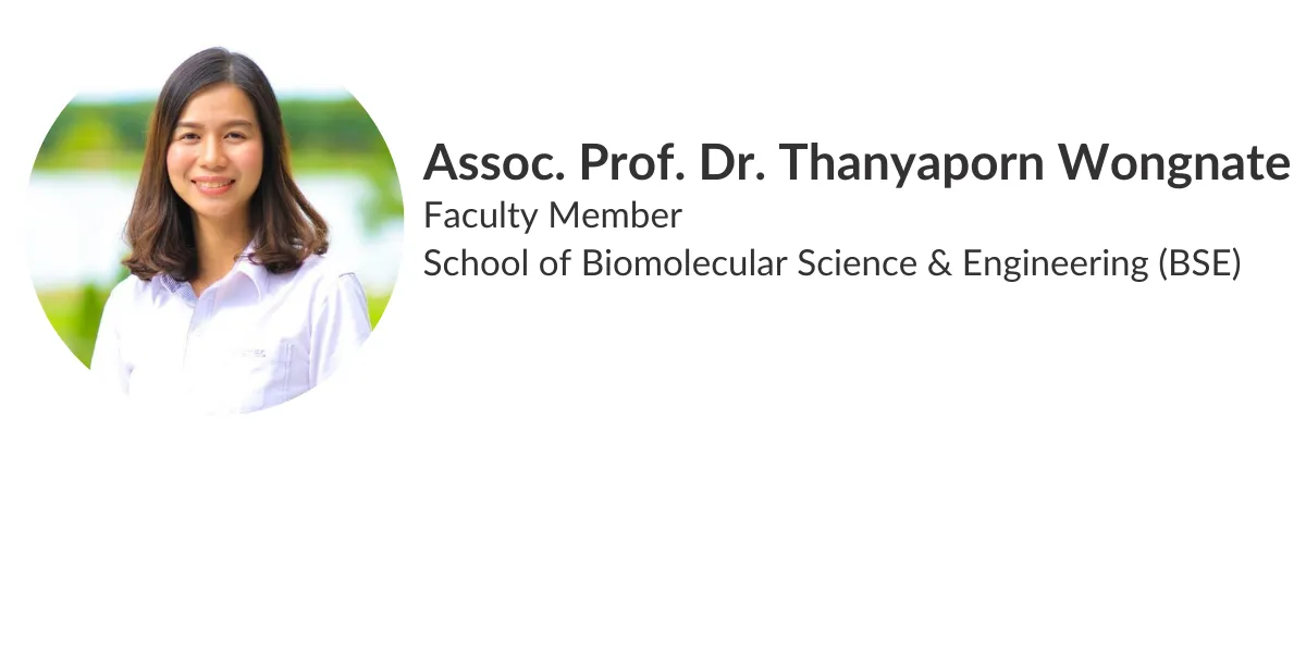 Assoc. Prof. Dr. Thanyaporn Wongnate is a faculty member at the school of Biomolecular Science and Engineering, Vidyasirimedhi Institute of Science and Technology (VISTEC), Thailand. She was a recipient of the Junior Science Talent Project (JSTP), a program sponsored by National Science and Technology Development Agency (NSTDA), Thailand, from high school through to Ph.D. She obtained her Ph.D from Department of Biochemistry, Mahidol University in 2011 under the supervision of Prof. Pimchai Chaiyen. Her Ph.D. thesis and one-year post-doctoral research at Mahidol University investigated functional roles of key catalytic residues of the enzyme pyranose 2-oxidase using various techniques including pre-steady state kinetics, steady state kinetics, kinetic isotope effects, thermodynamics, kinetic simulations and computational chemistry. Her thesis contributed significantly to the understanding of mechanism of sugar oxidation and oxygen activation. Dr. Wongnate did another post-doctoral research training with Prof. Stephen W. Ragsdale at Department of Biological Chemistry, University of Michigan. Her postdoctoral research investigated the reaction mechanism of methyl-coenzyme M reductase, the enzyme that is responsible for biological methane production and anaerobic methane oxidation. Using various biophysical techniques,Dr. Thanyaporn identified a key intermediate and elucidated the mechanism involved in the reaction of this enzyme, contributing to fundamental insights into this enzyme which is useful for developing a biocatalyst for the production of bioenergy.