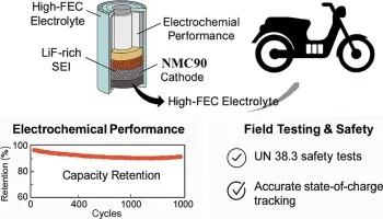 LiF-rich interphase engineering via high-FEC electrolytes in scalable NMC90//graphite 18650 cells for safe and durable electric two-wheelers Thitiphum Sangsanit, Worapol Tejangkura, Nattanon Joraleechanchai, Montree Sawangphruk* Chemical Engineering Journal, 2024 JIF = 13.2, CiteScore = 20.6, Scopus Quartile = Q1, & Top Tier, in category General Chemical Engineering DOI:Â https://doi.org/10.1016/j.cej.2025.166432 | First published on 31 July 2025 Abstract:Â This work demonstrates LiF-rich interphase engineering enabled by high-FEC fluorinated electrolytes in semi-industrially produced NMC90//Graphite 18650 lithium-ion cells designed for safe and durable electric two-wheeler applications. Read More |