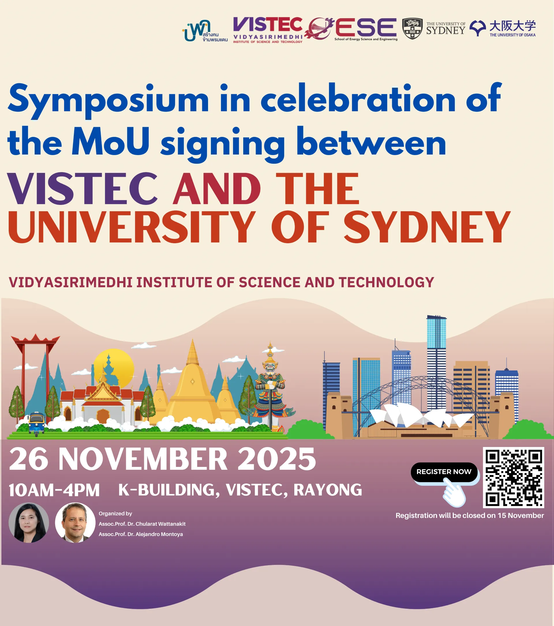 We strongly encourage the entire VISTEC Community to attend, particularly the MOU Signing Ceremony (10:00–10:35 AM), to be a witness of honor for this significant institutional commitment. The symposium also features Scientific Talks by researchers from both universities.
