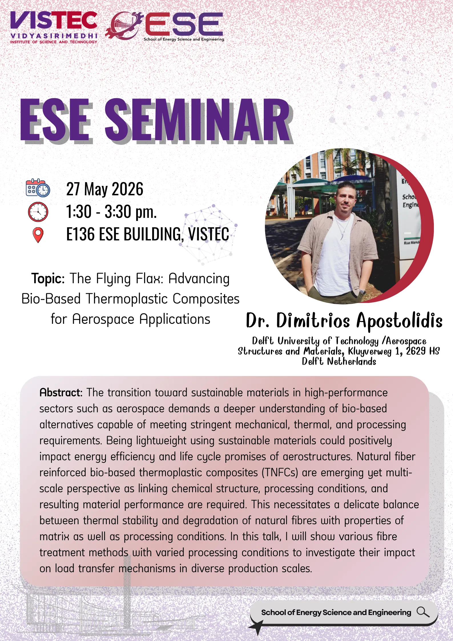 We cordially invite you to attend the ESE Seminar on 27 May 2026, by Dr. Dimitrios Apostolidis From Delft University of Technology.